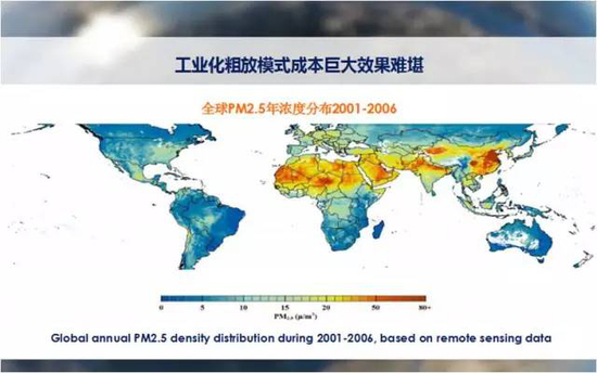 我们从1980年我上大学那一年到今天,基本的一个趋势大家会发现,第三产业比重越来越大,工业创造的价值在逐年下降。工业产生的后果越来越严重。由于过去我们的政府中一个市长是否变为书记,一个书记是否变为副省长,是看GDP的,所以,我们的市长们只管把PM2.5的分布图上的色块变红,现在不同了,各地政府都在努力把红地图变蓝,尽管这非常困难。