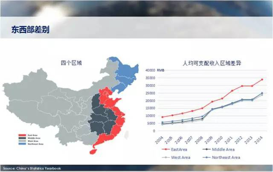 东西部收入差距也很大,从图中大家可以看出来,东部沿海地区,然后是东北,东北也稍微有点钱,接下来第三个档次就是中部地区,然后西部地区收入较低,所以大家可以看看人均收入最高的十个省,也是主要在东北和沿海地区,加上内蒙古,那么这部分中产阶级最喜欢的除了坐飞机以外,应该说自驾游是主要生活方式。一家有两三部车,为什么用大数据看他们家开什么车,因为你家有几部车决定了你家有没有钱,决定了我是否打你主意或者不打你主意。