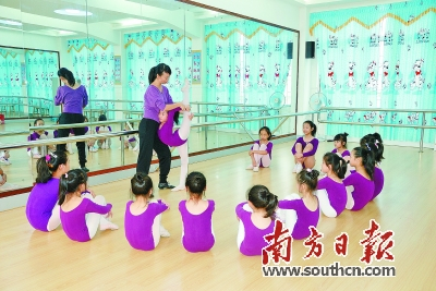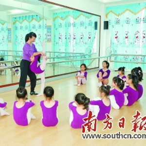高师附一小舞蹈队学生在苦练基本功。茂名市教育局供图