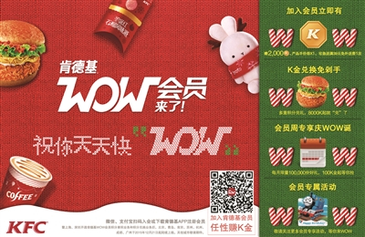 肯德基相关负责人表示,WOW会员是肯德基品牌与消费者的专属互动平台,消费者加入WOW会员后只要在肯德基消费即可累积积分(K金),进行多重积分兑礼,并享有会员专属的各项权益和丰富活动。而肯德基也希望通过各种专属的惊喜福利,与忠实用户建立更深层次的互动,让会员在肯德基4800家门店,不仅可以享受到美妙好滋味,更可以享受到多重会员专属福利。