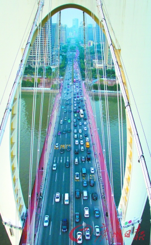 昨日傍晚,猎德大桥一度通行缓慢。 广州日报记者庄小龙 摄
