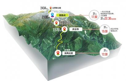 从2015年12月31日19时40分接警,到2016年1月1日7时17分最后一批被困大学生被安全带下山,总共历时12小时。