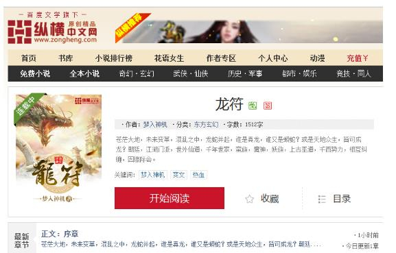 (图:梦入神机新书《龙符》已在纵横中文网创建,一月一日发布正文)
