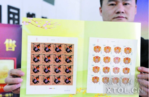 1月4日,工作人员向我们展示猴年生肖邮票。(记者 陈旭东 摄)红网湘潭站1月5日讯(湘潭晚报记者 王超 通讯员 扶暄)时隔37年,92岁高龄的艺术大师黄永玉再度执笔,只因为与一只猴的情缘。1月5日,中国邮政第四轮生肖邮票开篇之作——《丙申年》猴票将正式发行。与其他生肖邮票相比,这只“丙申猴”到底有什么不同?为何会吸引如此高的关注度?
