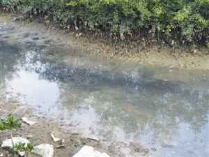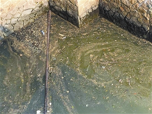 记者在后海大桥附近发现,一股股发黄的污水正从排水口流出,发出一股臭味,虽然水量不大,但却源源不断地排入大海中。而一些木棍、树叶,甚至塑料瓶也漂浮在排水口旁的海水上,周围的已经遭到严重污染的水体不断拍打着排水口的墙壁,留下受污染的“痕迹”。
