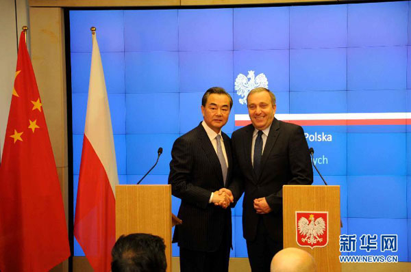 2015年10月15日,正在波兰进行正式访问的中国外交部长王毅(左)与波兰外长谢蒂纳在华沙一同出席记者会。当日,中国外交部长王毅与波兰外长谢蒂纳在华沙举行会谈,之后参加了共同举行的记者会。 (新华社记者 韩梅 摄)
