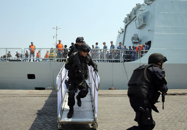 2015年3月29日到4月6日,中国政府分四批从战火纷飞的也门安全撤离了600多名中国公民,还协助来自15个国家的共279名外国公民安全撤离。这次撤侨,再次彰显中国政府保护我海外公民安全的坚定决心,而展开专门行动,帮助撤离外国侨民,则彰显了中国的大国担当和国际主义精神。中方各部门行动迅速高效,团结协作,组织精准严密,得到了国内外的一致赞誉。此次也是中方首次动用军舰撤侨,中国舰艇编队因此被誉为帮助中外侨民撤离险地的“诺亚方舟”。 (新华社记者 潘思危 摄)