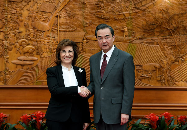 2015年10月12日,外交部长王毅在北京会见叙利亚总统政治与新闻顾问夏班。(新华社记者 张领 摄)