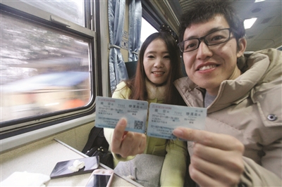 小情侣陈伟和魏婕特意来坐绿皮车。