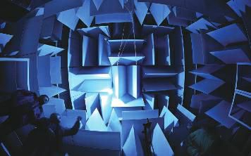 位于航海学院三楼50厘米见方的异型反射板,多个海绵锥形组合布满板的一面,尖朝下漂浮在7米深的水池中,水池长约50米宽约20米,水面全部让异型板覆盖,这是消声水池实验室。这个实验室建于上世纪80年代,主要由水池墙面、六面消声尖劈、航车和测试系统组成。