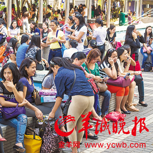 香港菲佣在街头三五聚会