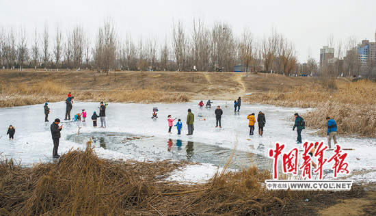 1月10日,北京市北五环外东小口森林公园中部,一个结冰的水塘中午就热闹了起来。这一带水域条件并不理想,但对于附近小区的居民来说已属难得。