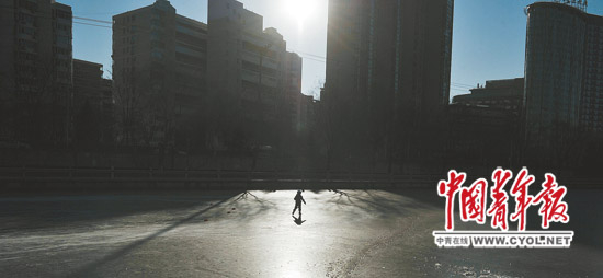 1月9日下午,家住红庙的李大爷独自坐地铁、转公交来到东南二环龙潭公园东侧的护城河上。年过花甲的他是一个有着50年“玩冰”经验的“老北京”。护城河冰面上人不少,旁边二环路上的车更多。冰面上的大部分人都素不相识,遇见几次也只是打个招呼就各自滑开。但这些“玩冰”者似乎有种默契,比如那些来自城区各处的冰球爱好者,见过几面就能凑成队伍一起打比赛。