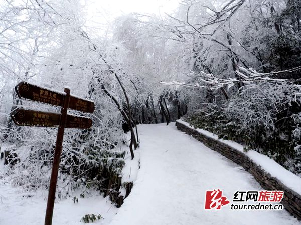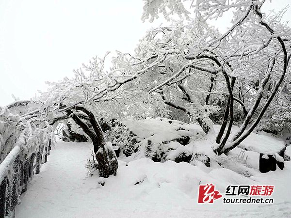 红网张家界1月14日讯(通讯员 丁云娟)随着一周的持续低温,张家界天门山上雪花纷纷扬扬不停歇,已成了一个粉妆玉砌的冰雪世界。