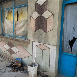 昨日下午3时,北曹家务村西口,房屋大多已被拆,断壁残垣上写着红色的拆字。79岁的付奎生家中空空荡荡,房屋靠南的数面窗户玻璃多被砸碎,木门上拴着一把大锁。大门外往南不到一米处,地上仍可见一摊血迹。