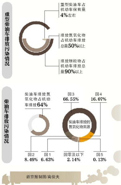有研究数据显示,一辆重型柴油车PM2.5一次排放等于40辆小轿车,氮氧化物等于20辆小轿车。