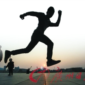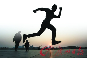 太古仓码头,年轻人奔跑的身影被夕阳勾勒成了剪影。广州日报记者陈忧子 实习生郭嘉亮 摄