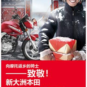 自1月10日春运大幕拉开, 新大洲本田就在所有经销门店发起“出发前巡回点检”活动。为返乡的摩托车提供23项标准点检,以及滤芯更换服务,让农民工兄弟能防患于未然,更安全地启程返乡过年。