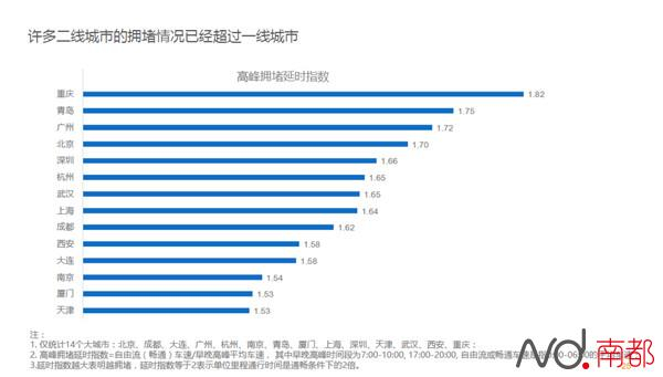 最拥堵排名紧随其后的是青岛1.75、广州1.72、北京1.70和深圳1.66。