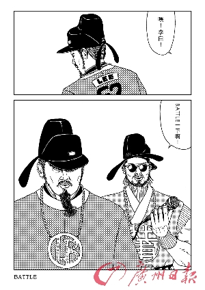 《BATTLE》灵感来源于Dick幻想李白和杜甫在古代说不定就像是现在的饶舌歌手,在相聚的时候会切磋一下。(下左图)