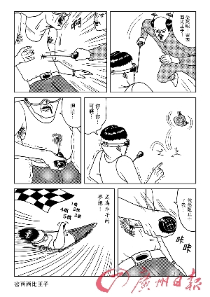 《密西西比王子》 灵感来源于2014年底,Dick去香港看好朋友小老虎参与的一个声音艺术展,第二天吃早餐的时候,朋友拿叉子假装刺Dick闹着玩。于是Dick便突然想到,如果叉子刺到肚子上变成了一根操控摇杆,一拉一推人便飞走了,后来就有了漫画里刺杀王子的锥刺最后成了变速杆的剧情。(下右图)