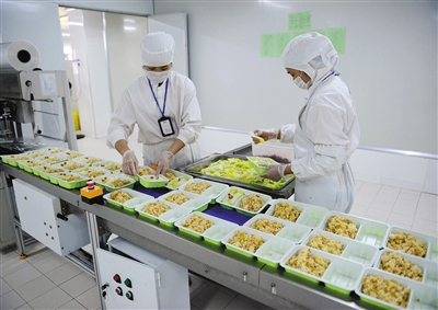 北京京铁列车服务有限公司则每天对产品的销售情况做收入统计,根据收入的构成分析,结合售票情况制定盒饭的生产订单。