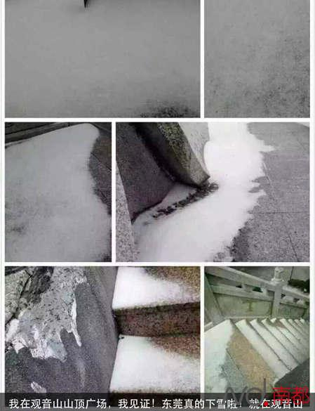 南都讯 记者陈静 都说只降温,不下雪的冷空气就是耍流氓。如今天遂人愿,10年来最强寒潮来袭,今早东莞也罕见地下起了雨夹雪,不少市民也在朋友圈晒出了难得一见的“雪景”和出门所遇见的“冰粒”。气象部门表示,此番雨中飘雪的“奇景”,出现在东莞大部分地区,也是东莞自1957年开始做气象记录以来,属于破天荒的历年首次。