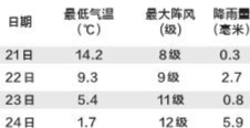 25日最低气温将降到1℃左右,接近历史最低值,北部和高山低至0℃以下。