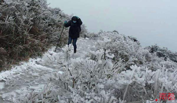 罗浮山分水坳温度降至零下7度。南都记者郭秋成摄