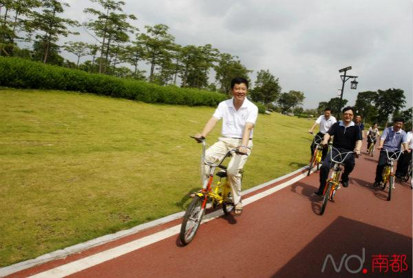 2012年7月25日,陈建华在白云湖骑自行车。(南都资料图片)