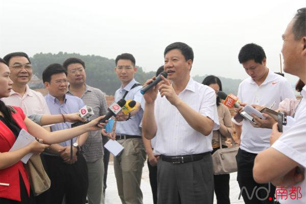 2012年6月25日,陈建华主持广州市政府领导新闻发布会。(南都资料图片)