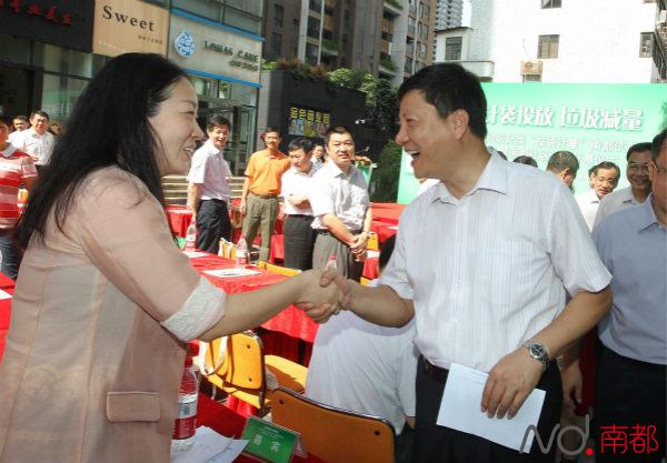 2012年7月8日,陈建华与“樱桃白”握手。(南都资料图片)