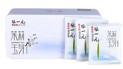 在张一元花茶家族里,茉莉毛尖就像一位谦谦君子:外形匀整平伏、细紧匀直多毫,多锋苗,色泽绿润匀亮,滋味浓醇鲜爽。它属于浓香型花茶,推荐中老年客户或喜饮浓茶的人品茗。