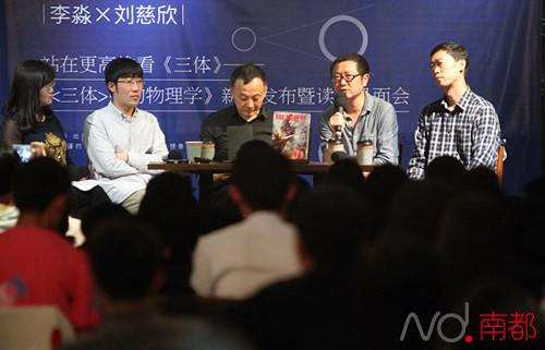 “站在更高维看《三体》——《中的物理学》”新书发布暨读者见面会在广州举办。嘉宾李淼、刘慈欣、姚海军和李剑龙与会。