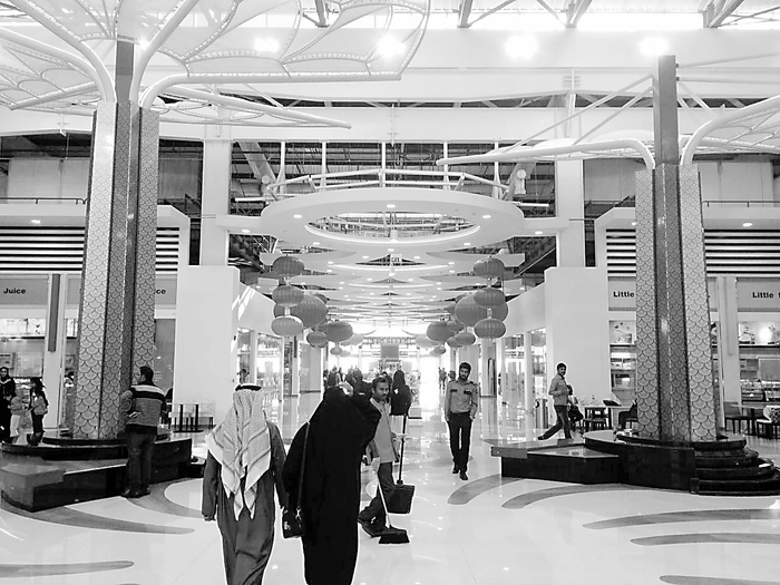 一串串大红灯笼悬挂屋顶,金色龙鳞图案的壁纸包裹着支撑房顶的柱子,走进位于巴林首都麦纳麦东北部穆哈拉克区的龙城,感觉如同到了国内某个高档的批发市场。唯有眼前流动的白袍或黑袍身影提醒记者,这里是与北京隔着五个时区的海湾国家。