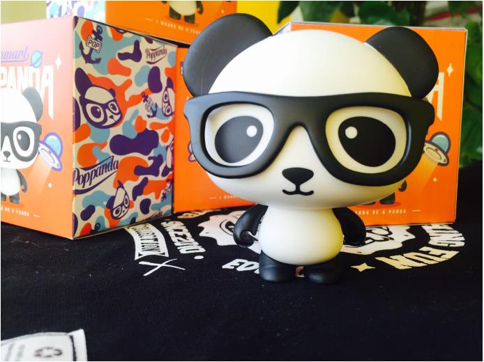 POPPANDA公仔以憨态可掬的熊猫为原型,加以创新设计,净身高10CM,周宽不过9.5CM,手掌大小,单手可握,PVC材质符合国家质量安全。椭圆的脑袋,架着酷酷的黑框眼镜,胖短的身材,呆萌的神态,是最受粉丝欢迎的原因之一。POPPANDA不仅仅是公仔玩具,更是一位可以随时陪伴在你身边的伙伴,带给你欢乐、惊喜和安慰。