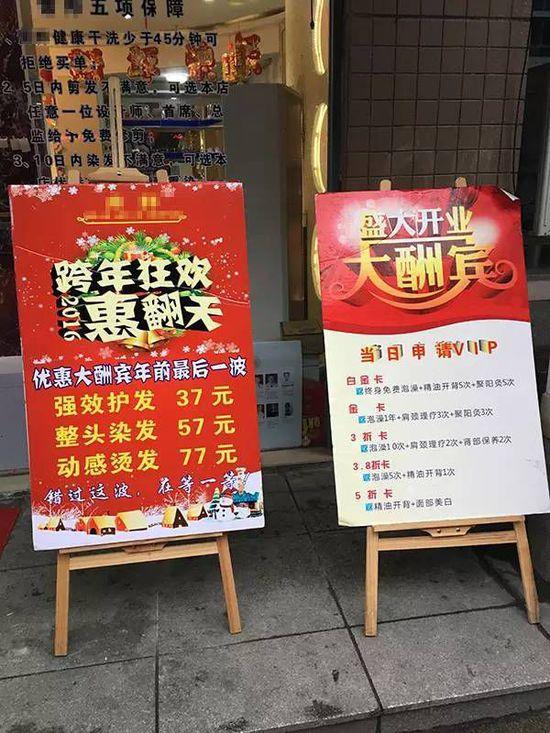 美发店门口价格颇具吸引力的招牌广告