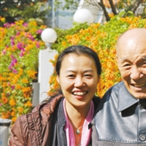 《袁庚传》作者涂俏与袁庚老人在一起。