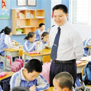 【深圳商报讯】(记者 任建新)2011年,32岁的叶志青接过了深圳市龙华新区高峰学校校长一职的接力棒,在当时可谓是“深圳市最年轻的小学校长”。2014年,上任3年的叶志青就被评为“龙华新区优秀校长”。如今,已经带领高峰学校走过4年多的叶志青对教育的热情尤胜以往。一番交谈下来,记者发现,这位校长经常把一个词挂在嘴边——以人为本。“以人为本”即以学生为本,叶志青说:“我们要把课堂还给学生,帮助他们自主化成长。”