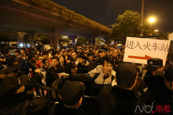 晚上6时许,南都记者来到广州火车站。此时,环市路火车站段由东向西方向已封闭。不少乘客需步行百米才能到达火车站。