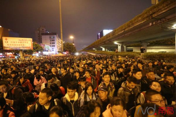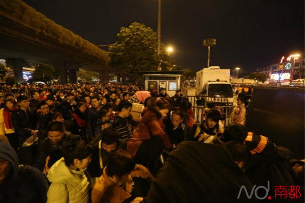 入夜的广州火车站广场更多人了 环市路封闭 三级应急预案启动