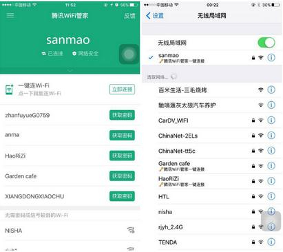 (图:iOS9.0以上系统安装腾讯WiFi管家可一键连公共WiFi)
