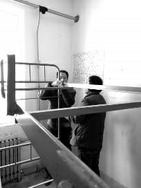 在校内的一间男生宿舍楼5楼,6名工人正对宿舍的架子床进行拆装,并对部分损坏进行更换。同时,还对宿舍的卫生等进行打扫。