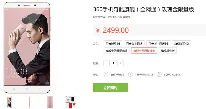 目前,360手机玫瑰金色旗舰版可以在360商城预定。和国内其他机型相比,该机型的最大亮点是采用了独创的“黑白+彩色智慧双摄技术”和主打“安全、轻快、省电”的360 OS。