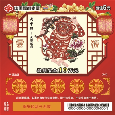 原标题:刮刮乐“丙申猴”系列票种迎新春