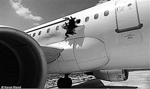据媒体报道,索马里航空部门表示,达洛航空公司这架空客A321型客机当天从索马里首都摩加迪沙飞往吉布提,但在起飞后不久就发生爆炸,机身右侧被炸出一个六英尺大小的“窟窿”,飞机被迫折返摩加迪沙国际机场实施迫降。