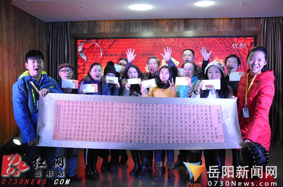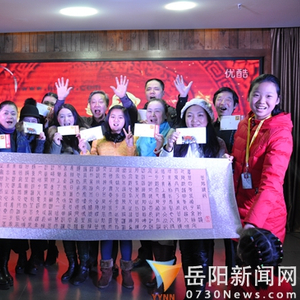 红网岳阳站2月4日讯(分站记者 宁平 宁隆)2月2日晚,岳阳市侨商联合会、岳阳楼区电商协会等单位联合举办岳阳首次互联网+文化艺术迎春之夜。《岳阳楼记》郑板桥体书法明信片首次亮相。
