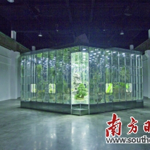 1月19日,在德国路德维希美术馆馆长贝亚特·赖芬莎伊德博士、广东省美术家协会主席许钦松、著名批评家皮道坚、著名文化学者朱大可等一众中外艺术“大咖”的共同见证下,位于广州53美术馆的一座魔幻“花园”,徐徐揭开它的神秘面纱:在小朋友《春天的花园》的合唱声和手中的烛光里,一座直径9米的六边形玻璃屋渐次亮灯,屋内各色草木、花卉、假山也从寂静的黑暗中展露端倪,场面肃穆而隆重。
