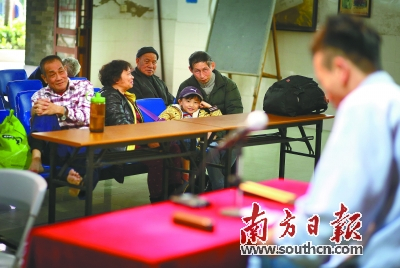彭嘉志在越秀区三所学校都开有“传承班”。不过,随着语言环境的转变,粤语说书的受众群体整体上呈现逐年萎缩的态势。一次,班上30多位学生都是“老越秀”,却没几个人会听白话。有学生甚至还来问他:能不能改教他们北方的评书?当年和彭嘉志一起学习说书的同门师兄弟,基本都已改行。“有时,就连我自己也会有想放弃的念头。”说到这里,他忍不住叹了一口气。