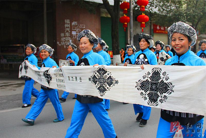 和往年相比,今年巡游中除常规的民俗表演,群众还自发打出“凝心聚力,众志成城,坚决打赢精准脱贫攻坚战,同步实现全面小康梦!”、“全面推进’项目兴市、改革兴市、实干兴市’”,努力打造武陵山片区文化旅游中心城和区域性中心城市”等横幅,用图片、文字展示少数民族地区人民生活的新变化、新气象、新风貌。